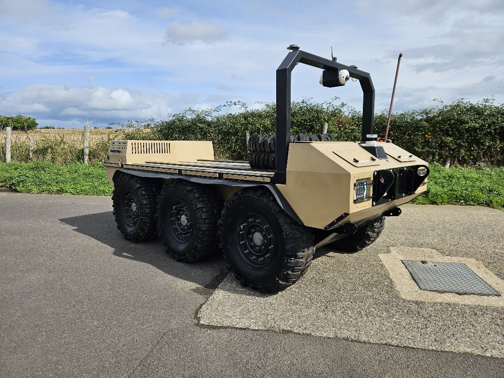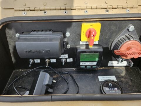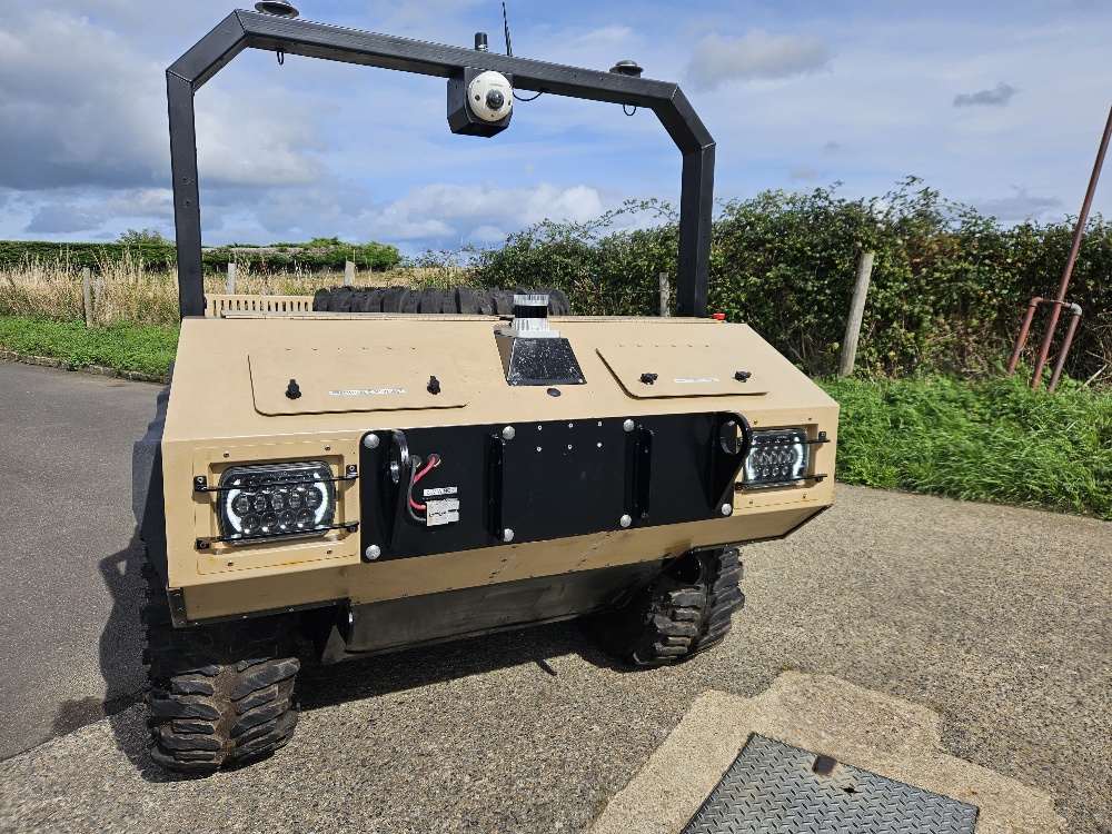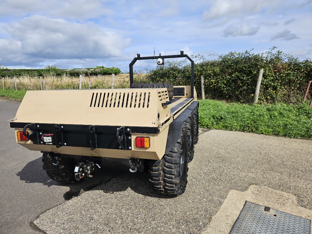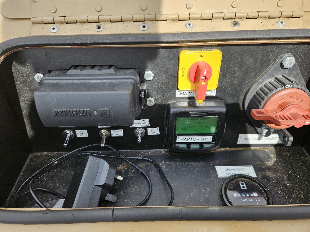 The RAPTOR is fully autonomous, with follow me, autonomous, tethered, RF and tablet modes, 1000 kgs payload capacity, fitted front and rear facing cameras, detachable NATO tow hitch, exportable DC power output, separate 3.8 kWh battery pack that allows for long periods of silent drive without the need to run the integrated generator.